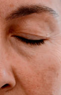 Die Augenpartie wirkt prall und geglättet. Fältchen sind aufge-polstert.